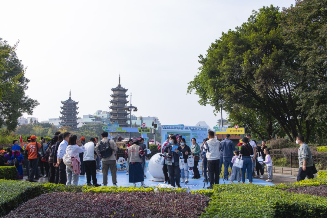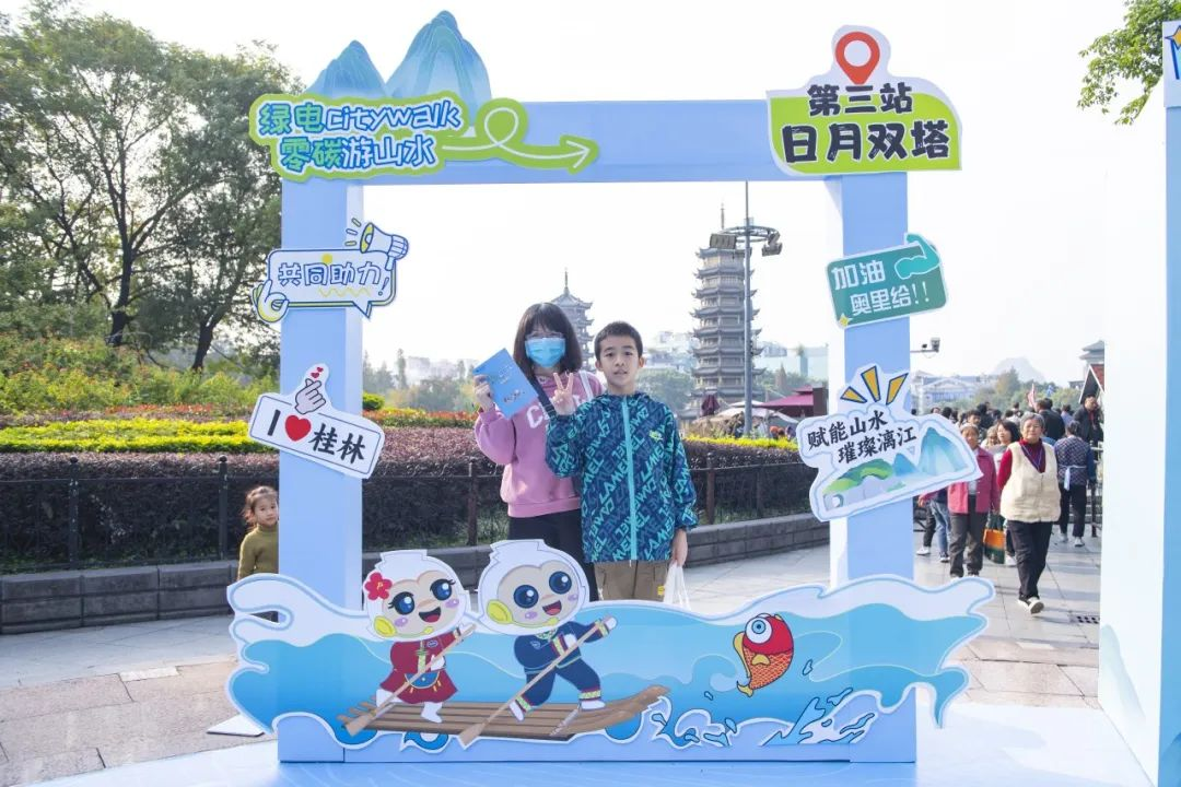 碧水蓝天,空气清新,在日月双塔的映衬下,桂林展现出千年古城历史韵味和现代气息,市民和游客一边赞叹着桂林山水甲天下,一边踊跃参与零碳打卡活动。此次活动结合“city walk”的潮流生活方式,旨在普及绿色用电知识,并通过线上线下互动,提高公众对低碳生活的认识,倡导绿色低碳生产和消费模式,保护桂林的自然美景。本次活动积极践行零碳理念,不仅是一次有趣的体验,也是一次有意义的教育,让我们携起手来一起保护环境,用实际行动推动桂林成为零碳绿电示范区,更为桂林的世界级旅游城市建设添砖加瓦。