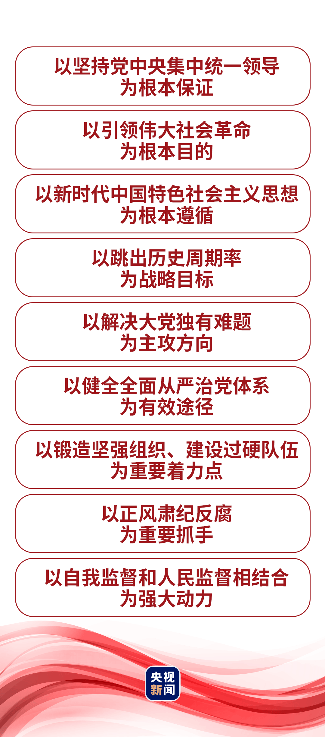 “要站在事关党长期执政、国家长治久安、人民幸福安康的高度,把全面从严治党作为党的长期战略、永恒课题,始终坚持问题导向,保持战略定力,发扬彻底的自我革命精神,永远吹冲锋号,把严的基调、严的措施、严的氛围长期坚持下去,把党的伟大自我革命进行到底。”