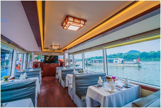 它是目前桂林市区漓江精华段上第一艘集休闲娱乐、团队活动、会务婚礼及船上餐饮等服务于一体的多功能豪华餐船!美景、美食、美酒、音乐、表演将在这里融于一体,比传统高端餐厅体验更胜一筹。