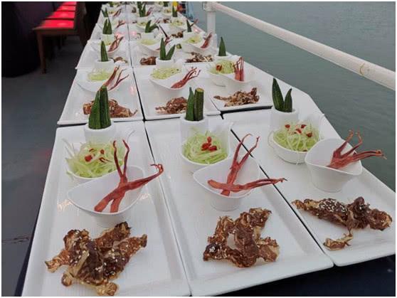 这艘高端餐船上,“米其林”级别的特色美食趴,宾客可以一边欣赏漓江夜色美景,一边享受饕餮美食,同享奢华与浪漫的精致生活。