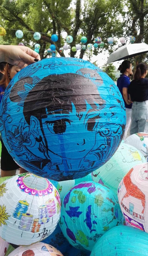 值得一提的是,古南门悬挂的数百盏花灯上,都是由桂林少年宫、榕湖小学以及柘木镇禄坊村的孩子们,一笔一划手绘而成的图卷,尤其以“哪吒”造型最为抢眼,天马行空,童趣盎然。