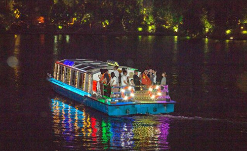 中秋月圆,很多市民会选择乘船夜游两江四湖。坐在灯光绚丽的豪华游船上,沐浴着凉爽秋风,谈天论地,赏月赏景,美哉快哉。