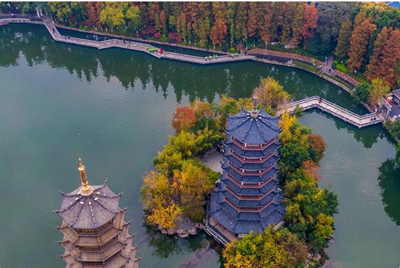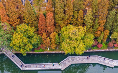 冬日的两江四湖,银杏身披黄金甲,挺拔水杉色彩斑斓