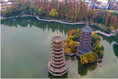 迎着冬日里和煦的阳光,静谧的湖面上,水杉风姿如镜面般呈现,一个个奔跑的身影融入其中,平添十分活力,让整个两江四湖景区都热闹起来。