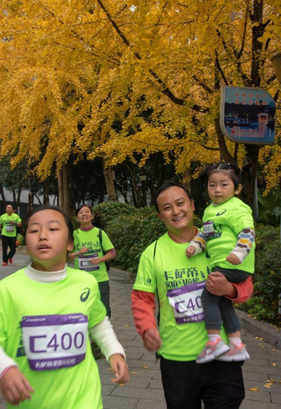 12月14日,在这仙境般画面中,有数百个家庭正在欢乐慢跑,虎虎生风,带起地上金黄的银杏叶,留下一串串开心笑声。