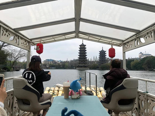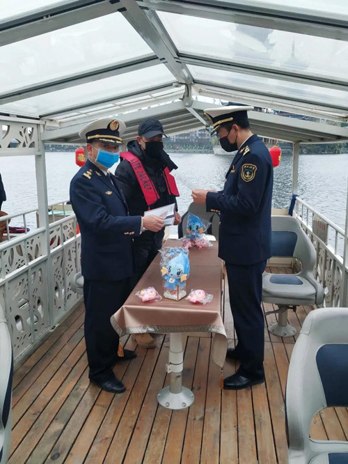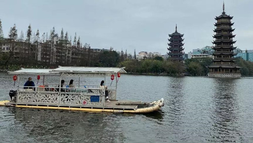 两江四湖最火游船---悠然轻舟率先开航!随着疫情的有效缓解,桂林各景区逐步开始对外开放,就在今日,桂林名片-两江四湖景区开放轻舟游四湖的路线,以市区内最精华的风景,将秀美的桂林呈现在广大游客面前!桂林海事局和漓管委的领导们对本次复航也高度重视,亲临两江四湖景区的日月湾码头现场为景区的正式复航指导工作。