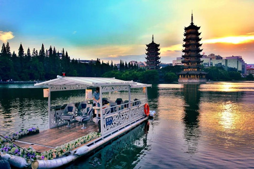 自3月27日起,桂林两江四湖景区全部游船线路开通复航,包括日游和夜游两大产品,且市区段漓江游线路也同步复航。特色餐船、豪华船、民族风情船和悠然轻舟等多种游览船型,将再一次搭载全球游客,畅快地游弋于两江四湖画卷之中。