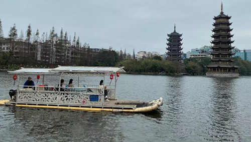 在公司领导的运筹帷幄和全体员工的积极努力下,于3月14日经过市漓管委、海事局及秀峰区文体旅局等相关部门的检查指导后,两江四湖景区率先开通“悠然轻舟”航线,开放式设计的轻舟不仅能让客人全方位观看如画风景和炫丽夜景,还能随时随地呼吸到充满负氧离子的新鲜空气,受到了两百多名游客和市民的极大欢迎。阳春三月,万物复苏。随着疫情的有效缓解,在3月27日两江四湖景区迎来全面复航,包括日游、夜游及市区段漓江游览线路。在首航当天,“日游四湖”以及“市区段漓江”航线共迎来了55位游客乘船游览。全面复航也预示着两江四湖景区按照国家和桂林市有关规定,正式恢复生产和服务,对桂林城市旅游产业的复苏起到了里程碑式的激励意义。