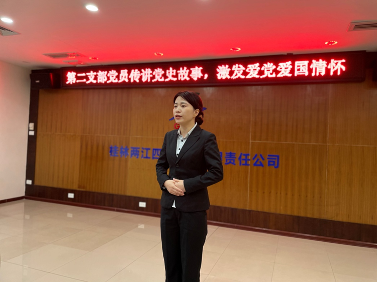 首先,全体党员重温入党誓词,进一步坚定理想信念,奋斗初心。接着王晶等5位同志分别生动讲述了《夏明翰英勇就义的故事》、《桂林“7.9”三烈士》、《百色起义的忠诚底色》、《湘江战役之光华铺阻击战》、《广西解放——红旗插上镇南关》等中国共产党不同时期的典型故事,带领大家一路穿越厚重的历史时空,追寻先烈足迹,品读革命历史。特别是他们选讲的故事大多是和我们的家乡有关,就是发生在家门口的事,大家更喜欢听,身为桂林人,倍受鼓舞,深深感慨,有多少革命先烈的鲜血洒在了八桂大地上,谱写了这一首首壮丽诗篇。故事讲完后,支部成员心情澎湃,踊跃发表听后感言,公司党委委员吴惠军说:“这样的学习方式,生动形象,让党员干部对我们家乡的红色历史有了更深层次的了解,也让我们从红色历史中汲取奋进力量,传承革命薪火。”