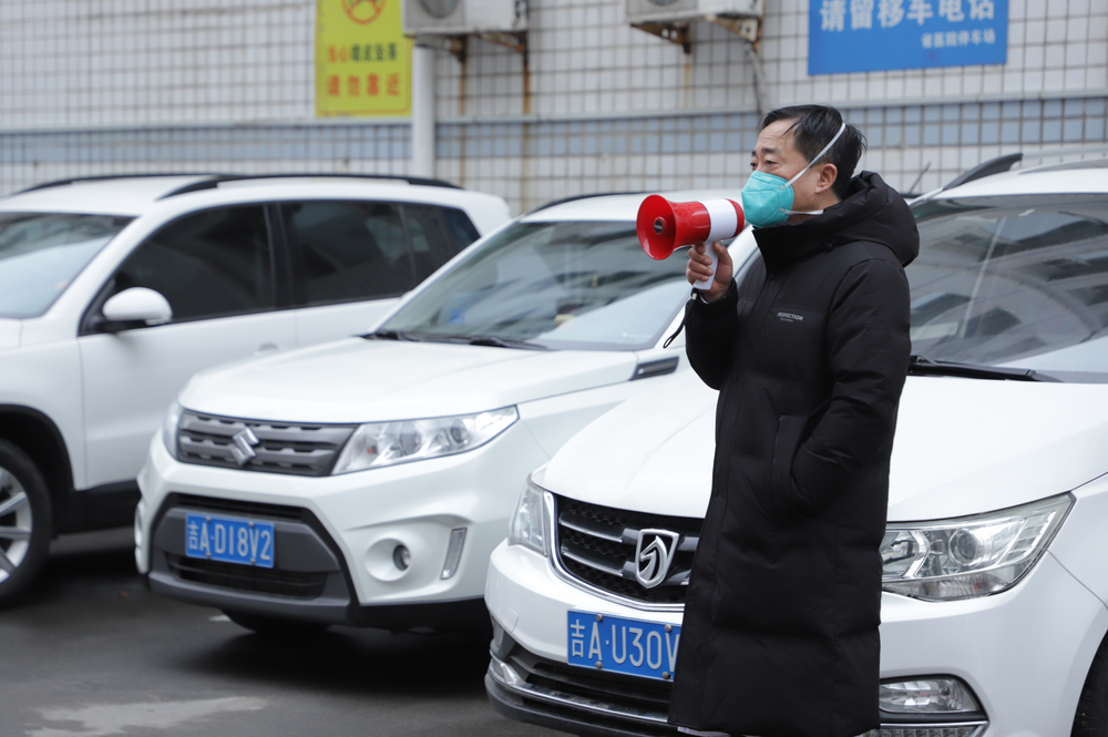 这是3月12日,吉林省人民医院党委书记苑志新指挥患者转运。(受访者供图)