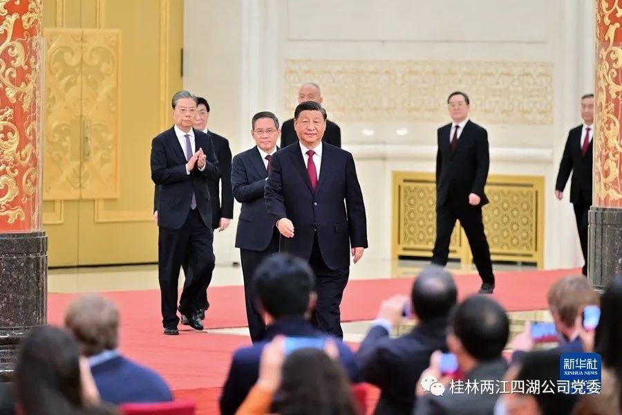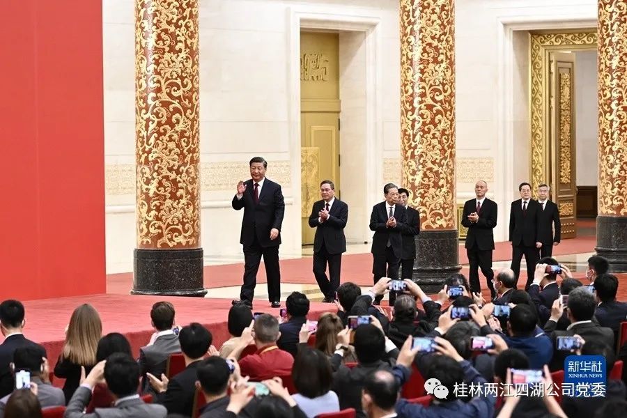 新华社北京10月23日电 刚刚在中国共产党第二十届中央委员会第一次全体会议上当选的中共中央总书记习近平和中共中央政治局常委李强、赵乐际、王沪宁、蔡奇、丁薛祥、李希,23日中午在人民大会堂同采访中共二十大的中外记者亲切见面。