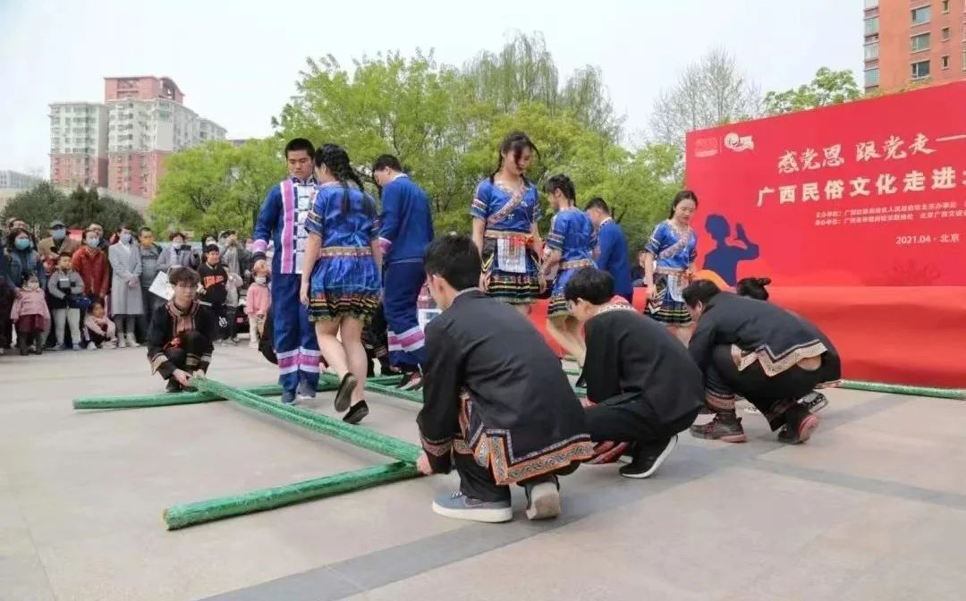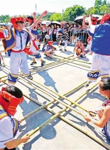 (图为三月三文化交流协会成员进行竹竿舞表演)