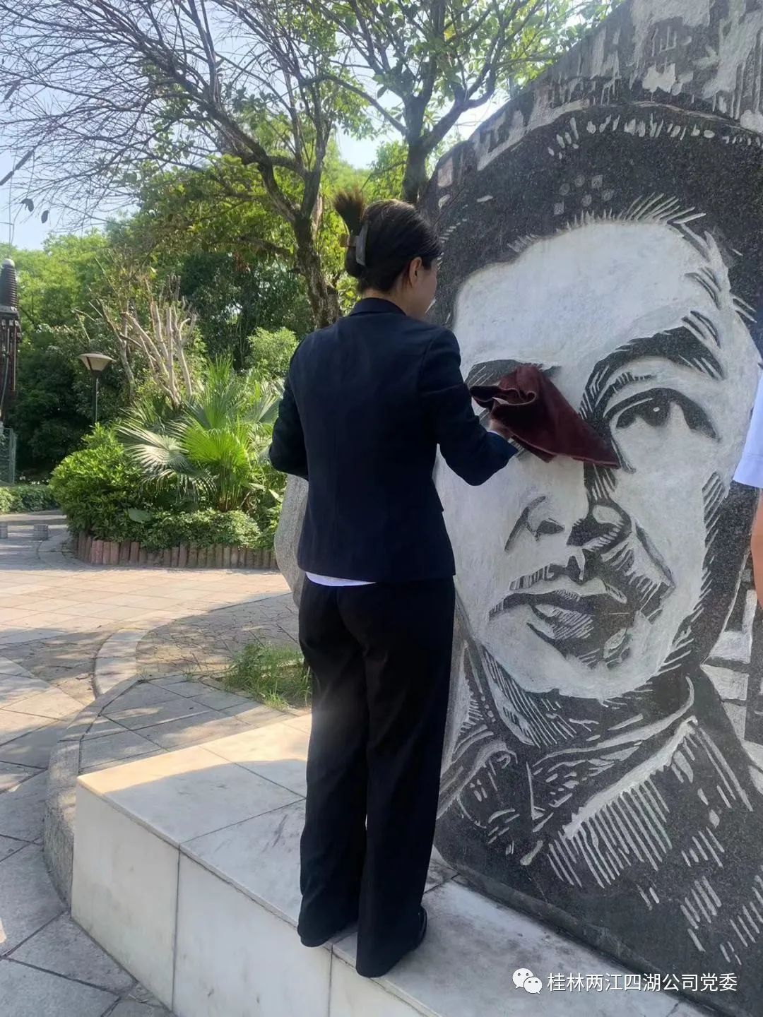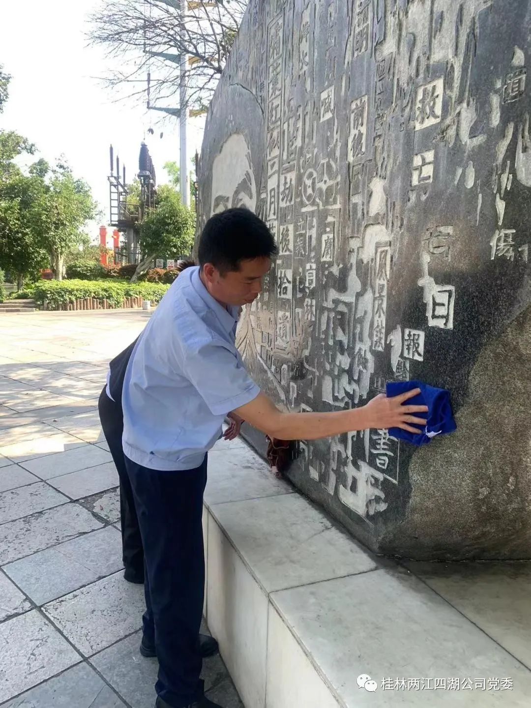 4月26日下午,两江四湖公司第二党支部“党员先锋岗”开展了以“擦亮石像美化环境”为主题的“我为群众办实事”活动。