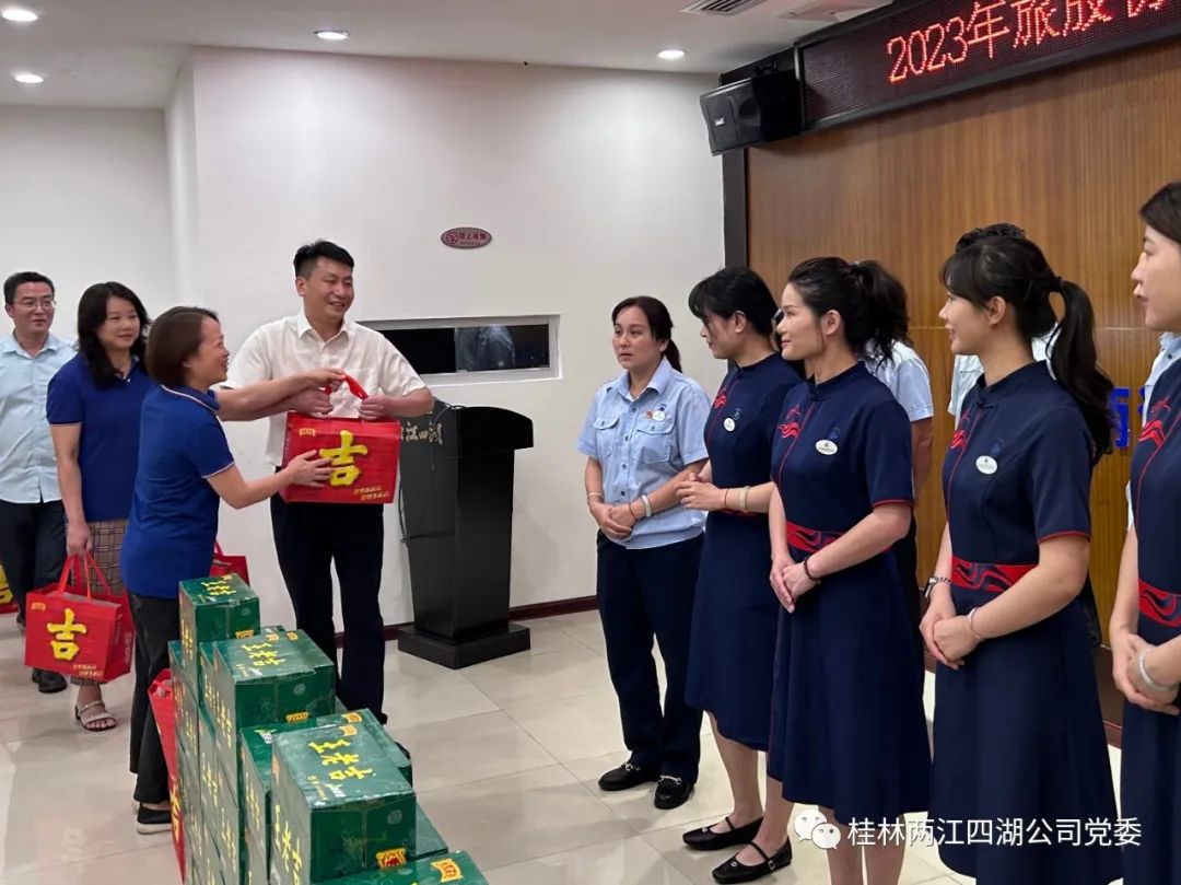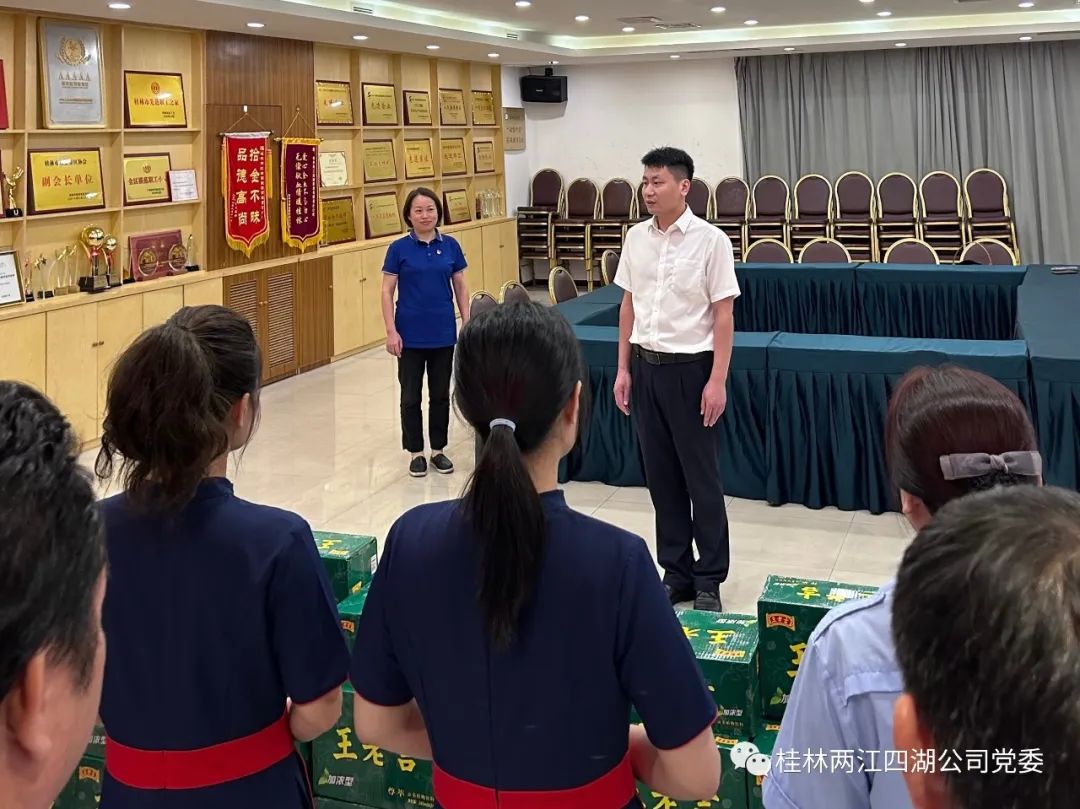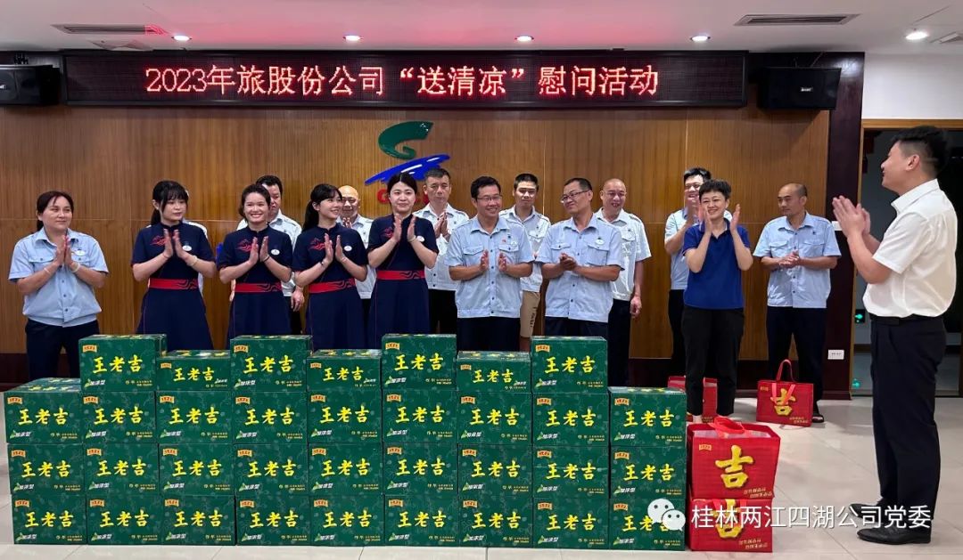 慰问过程中,王小龙副总裁亲手把清凉饮料送到员工手上,叮嘱大家要合理调整作息时间,注意身体,并对他们不畏炎热酷暑坚守在一线,为公司争效益的工作精神表示赞许。王副总裁对两江四湖在公司领导班子的带领下出色的完成了上半年经营任务表示肯定,希望大家在暑期旺季克服困难,再创辉煌。