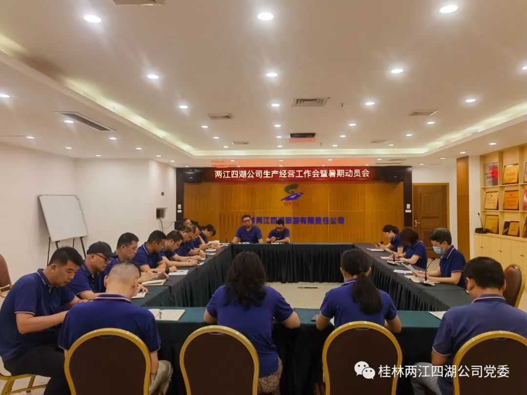 公司上下要团结一心,提高政治站位,从经营销售、产品升级、人员保障、设备维保、水位保证、后勤保障、安全品质服务等方面进行部署,要求各部门全面切实落实主体责任,全力以赴做好生产经营管理工作,全方位为游客提供优质的服务,努力完成公司既定的暑期接待任务。