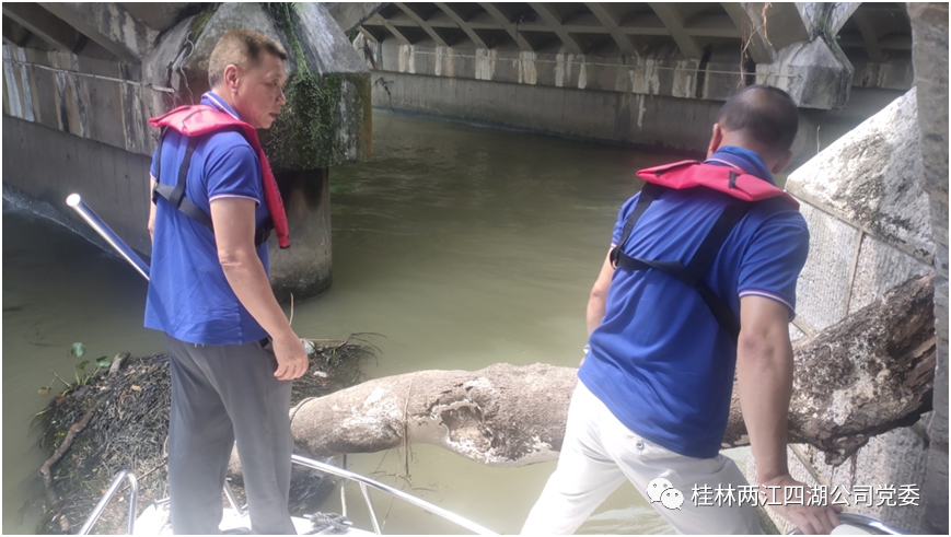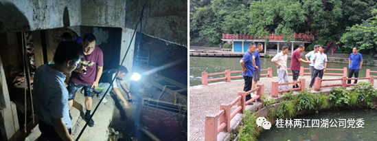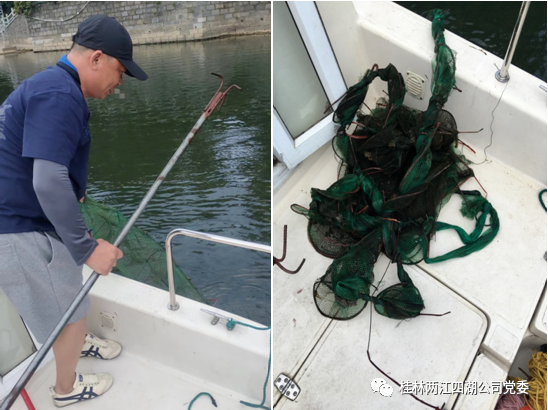 ▲清理漓江帝苑酒店码头段航道捕鱼地笼