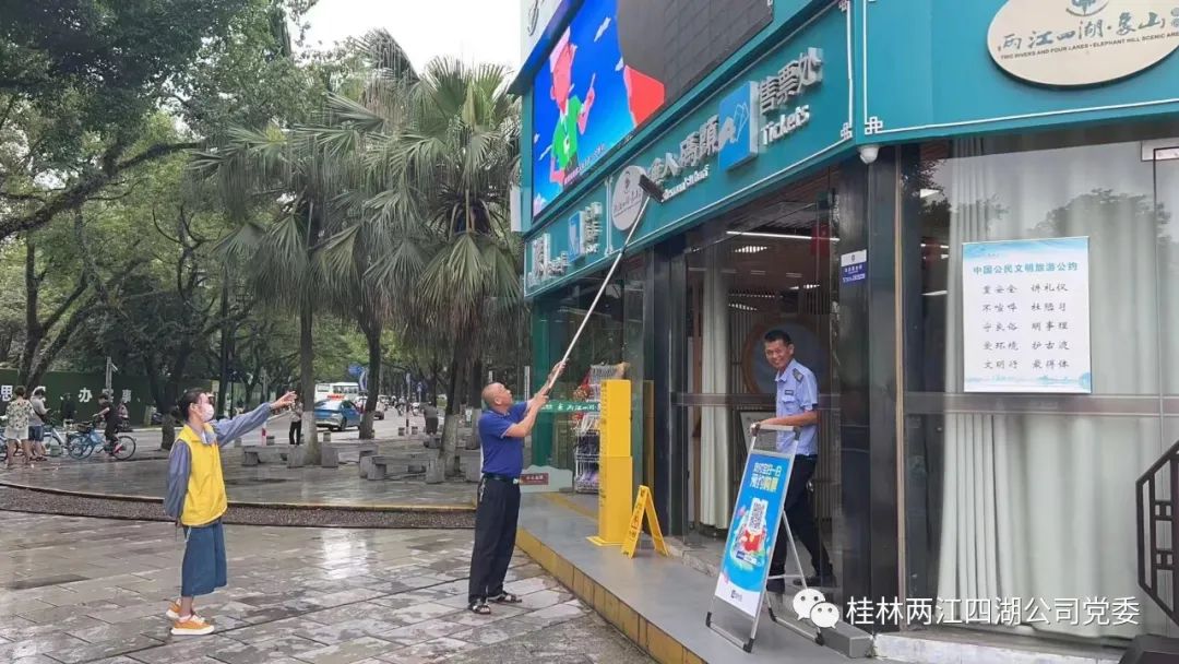 近期,桂林市创城办督查组将开展第二季度实地测评督查工作,为了做好责任区范围内的环境卫生,进一步改善旅客乘渡环境,打造“文明、和谐、舒适、卫生”的服务形象,两江四湖公司第党二支部组织党员代表在渔人码头候船厅开展了清洁维护“志愿服务”主题党日活动。