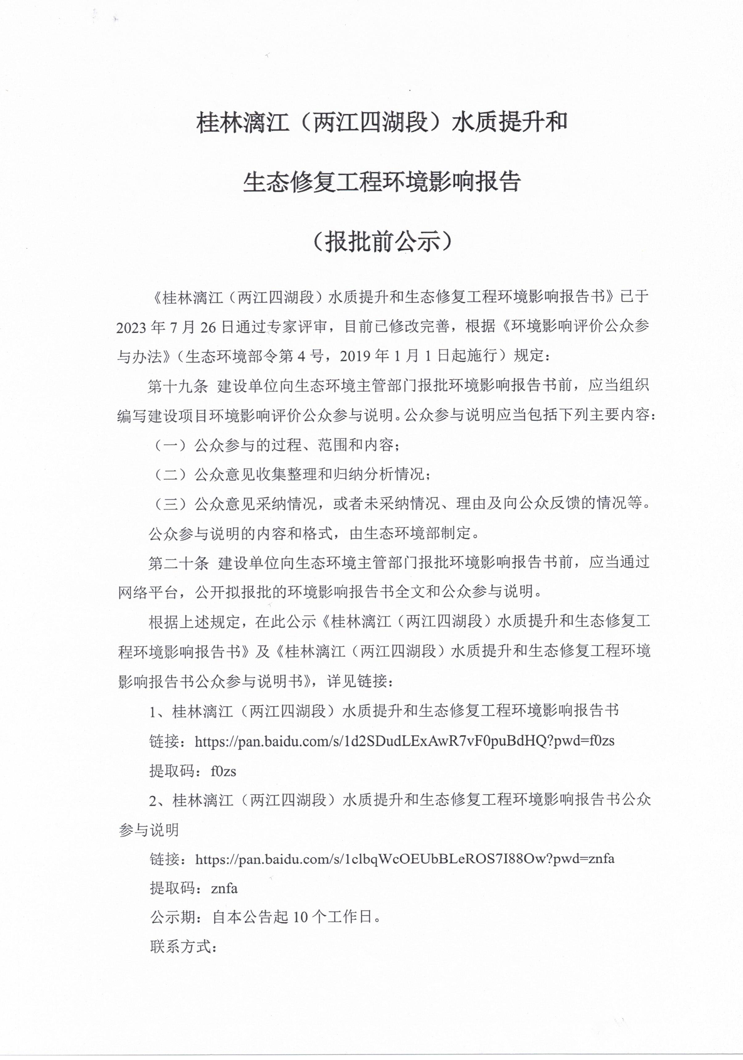 桂林漓江(两江四湖段)水质提升和生态修复工程环境影响报告