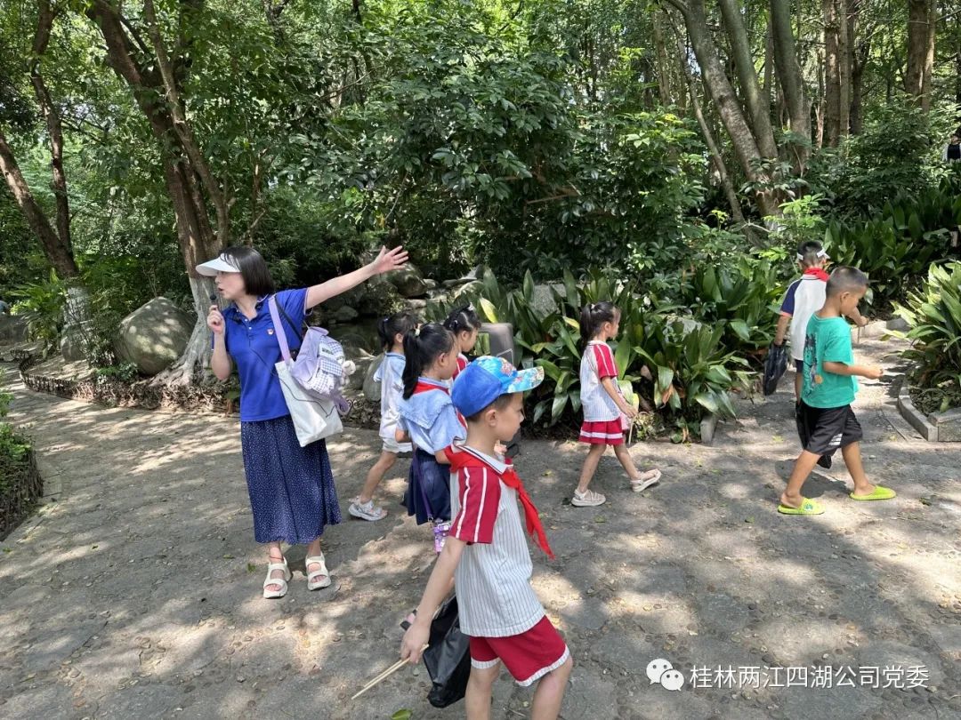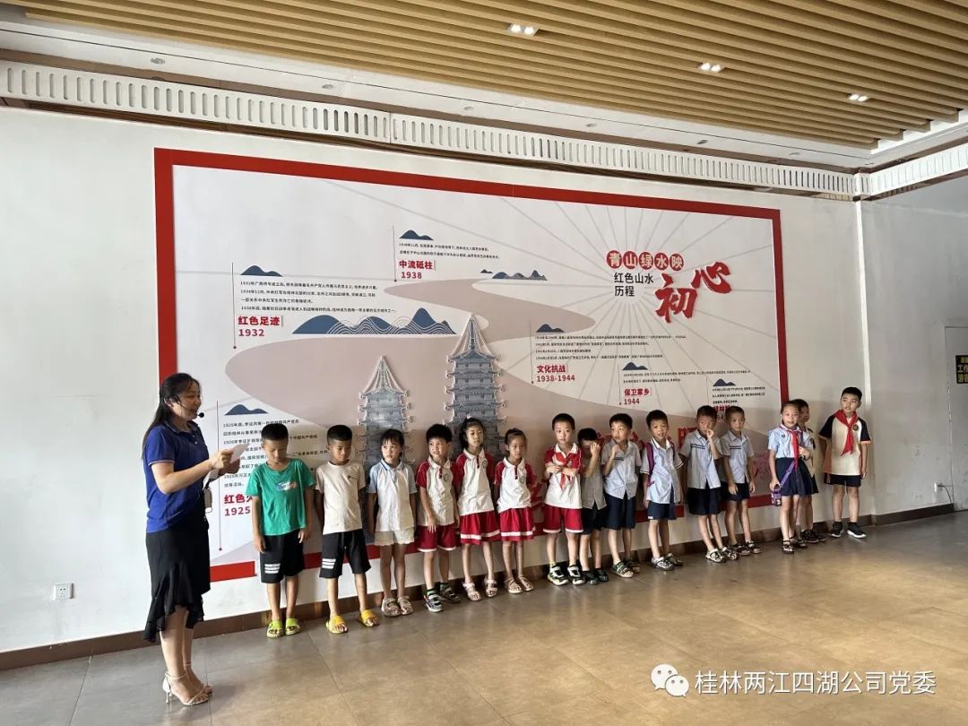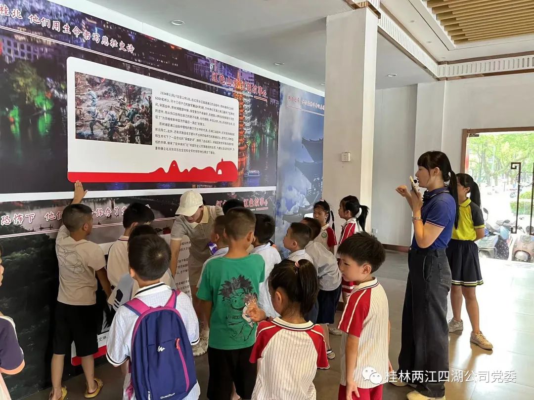 为落实党的二十大精神,传承红色基因,培养社会主义接班人,两江四湖公司第一党支部与桂林市西山小学党支部携手开展了一场别开生面的社会教育活动。本次活动以公司开展的研学教育为基础,让西山小学的学生走出校园,走进社会,感受历史、认识现实、展望未来,丰富他们的文化生活。
