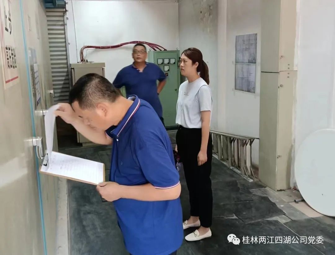 ▲公司财务总监谢娟在木龙湖船闸进行安全检查