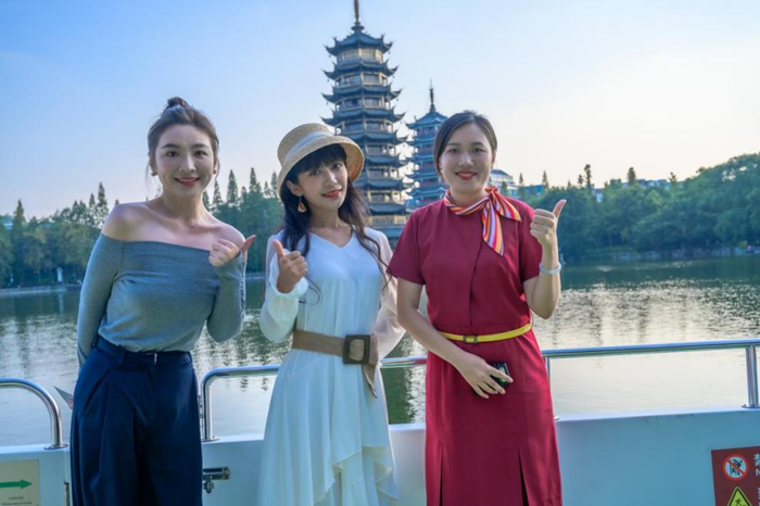 9月30日国庆节前夕,桂林两江四湖景区携手中国移动公司,通过全球最先进的“5G+云平台”技术直播平台和5G网联无人机技术,在两江四湖景区的豪华游船上,为全网进行了一场“颜值超高”的旅游直播活动。